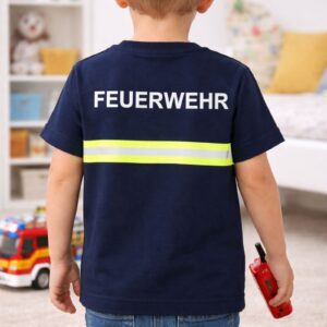 Tatütata, die Feuerwehr ist da… Mit diesem tollen Shirt werden die Herzen aller kleinen Feuerwehrmänner und Feuerwehrfrauen höher schlagen. Das Kinder-Shirt besteht aus weicher Baumwolle in Dunkelblau, Du kannst es problemlos bei 60 Grad in der Maschine waschen. An der Rückseite ist der weiße Print Feuerwehr aufgedruckt. Zusätzlich sind gelbe Leucht Reflektoren am Oberteil angebracht, die einer echten Feuerwehr-Uniform nachempfunden sind. Und damit nicht nur Ihr Euch in eurem neuen Feuerwehrmann Tshirt pudelwohl fühlt, haben wir auf eine faire Herstellung geachtet.